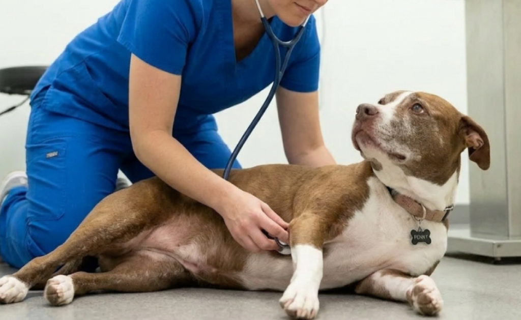 Ms Smith owns Penny, an 8 year old female intact Pit Bull. You haven’t seen Penny in 4 years nor has another veterinarian. You see that Penny has been lethargic and vomiting and immediately start your differential list.