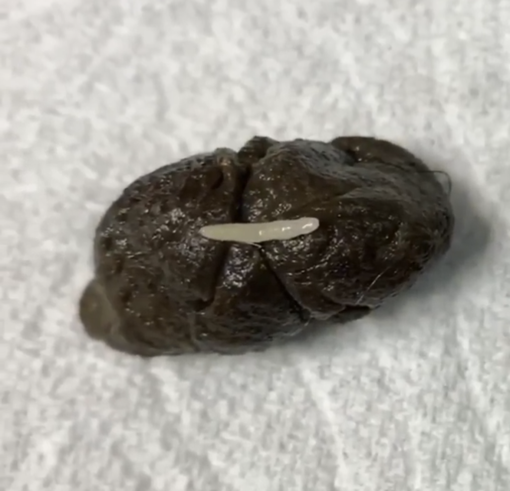- motile or dried white to gold colored proglottid (“rice grain”, “cucumber seed”, or “sesame seed”) in the perianal and/or perineal regions