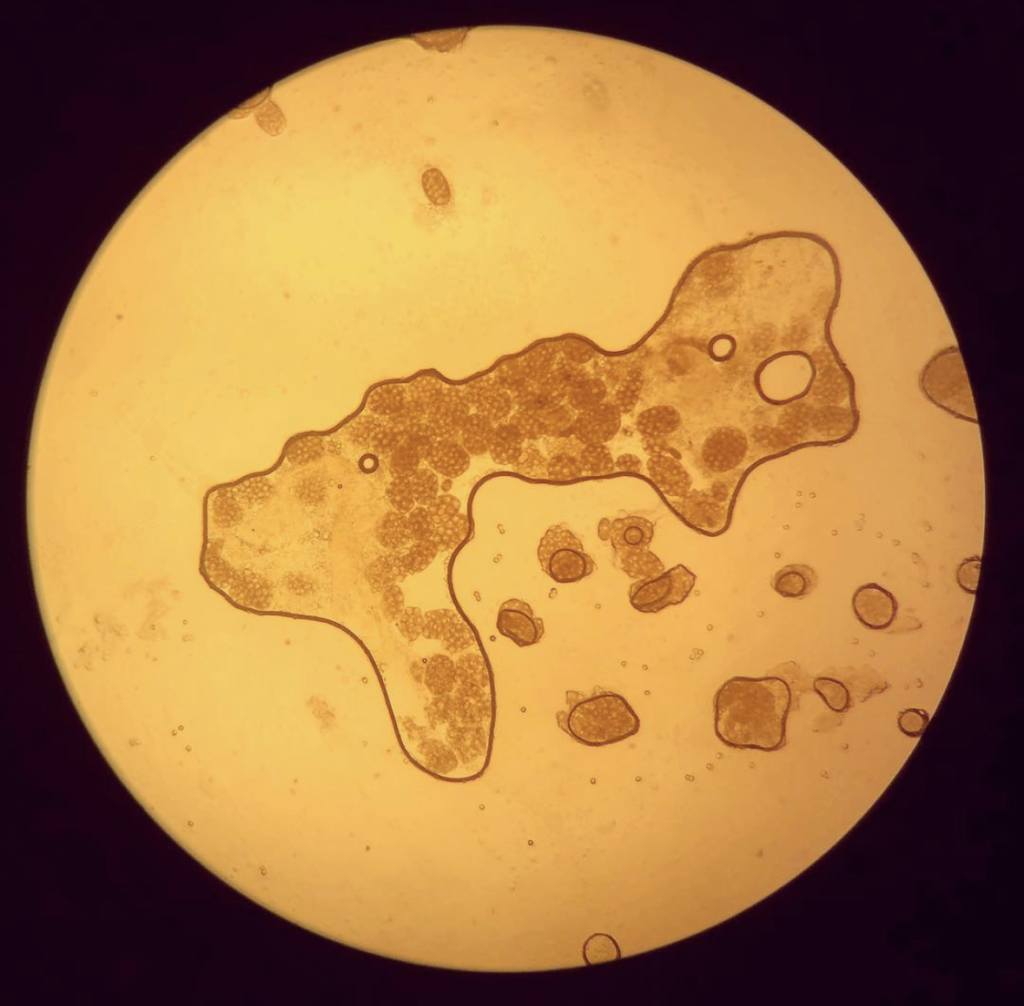 (iii) Microscopic exam of an intact proglottid placed on a slide, and seeing if the proglottid is releasing its egg packets (like a chicken laying eggs).