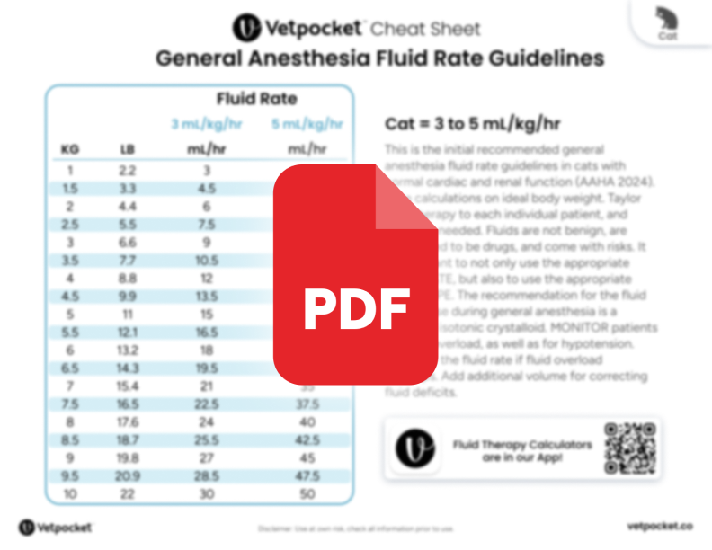 đŸ’§General Anesthesia Fluid Rate for Cats Cheat Sheet